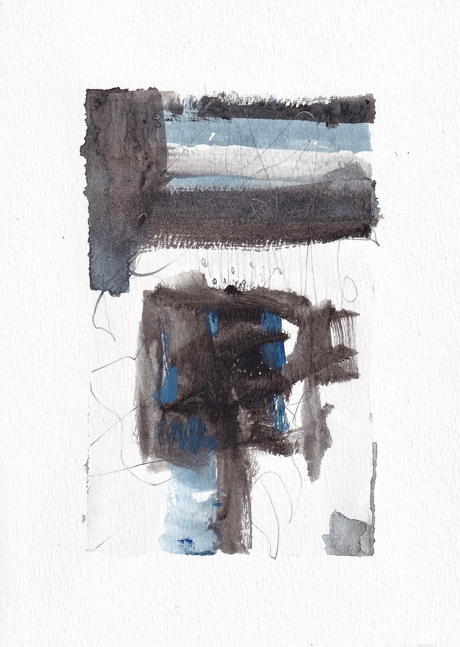 Blue Abstract #4 5" x 7" Gouache on Art Paper