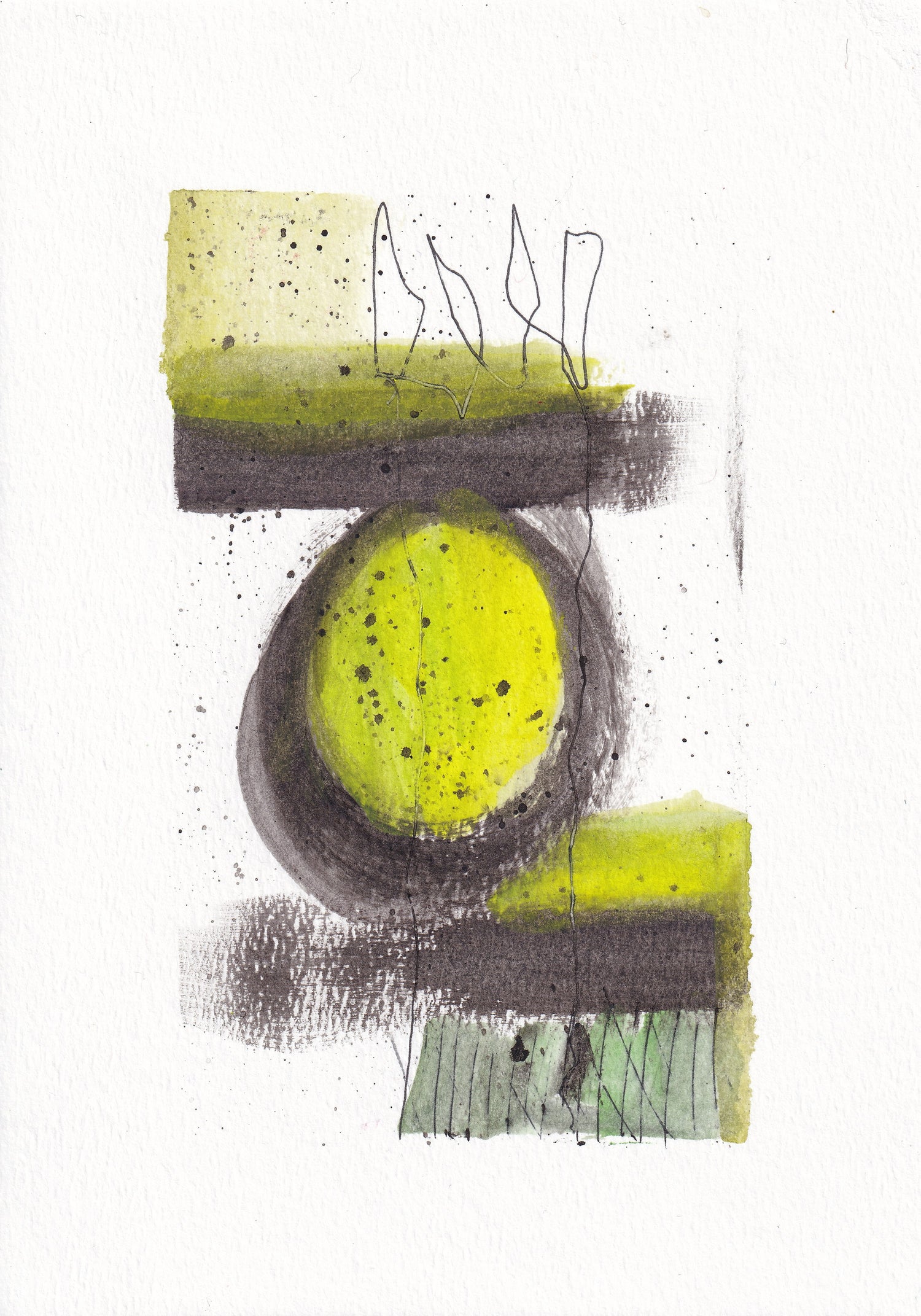 Green Abstract #2 Pigment on Paper 5" x 7"