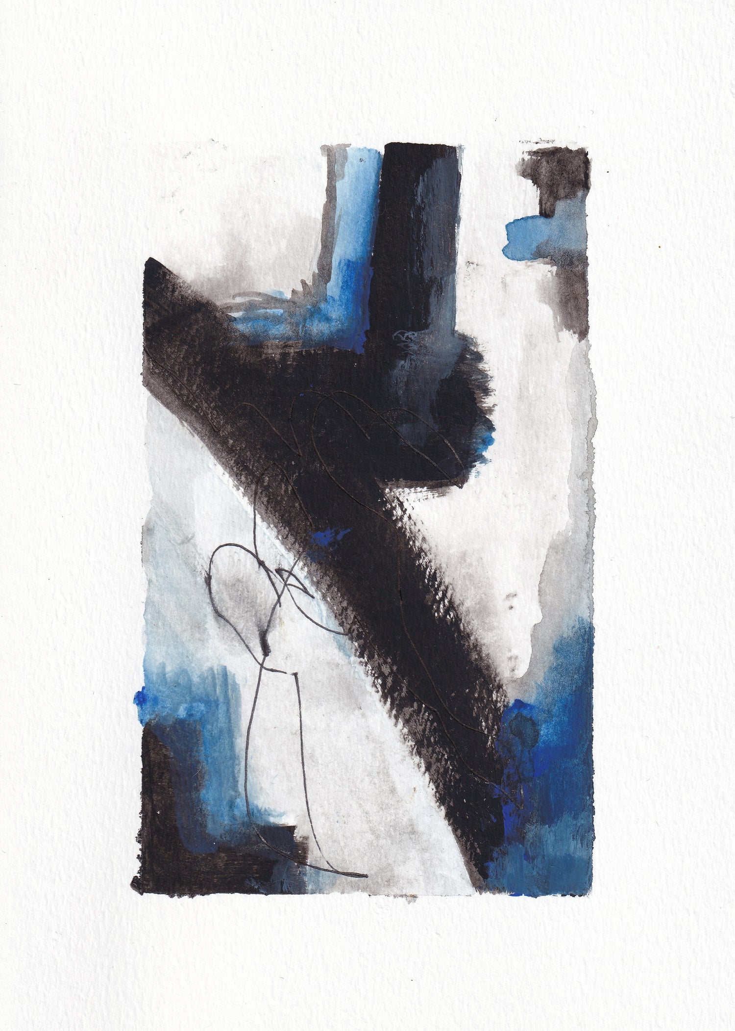 "Holding On By A Threat" Blue Abstract 5" x 7" Gouache on Art Paper