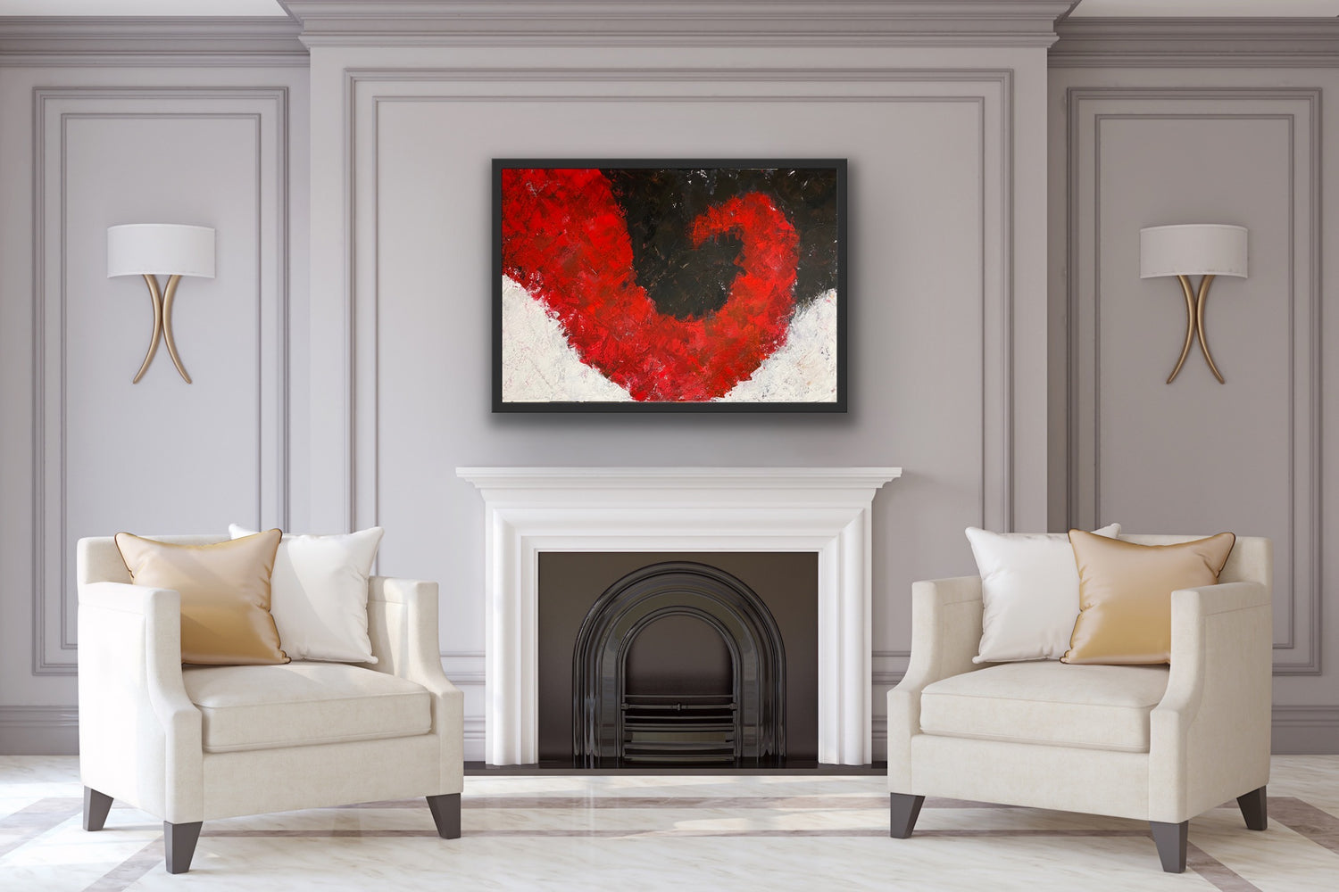 Red Nautilus Rising Acrylic Abstract Painting 24" h x 36" w by artist Raymond McKenzie
