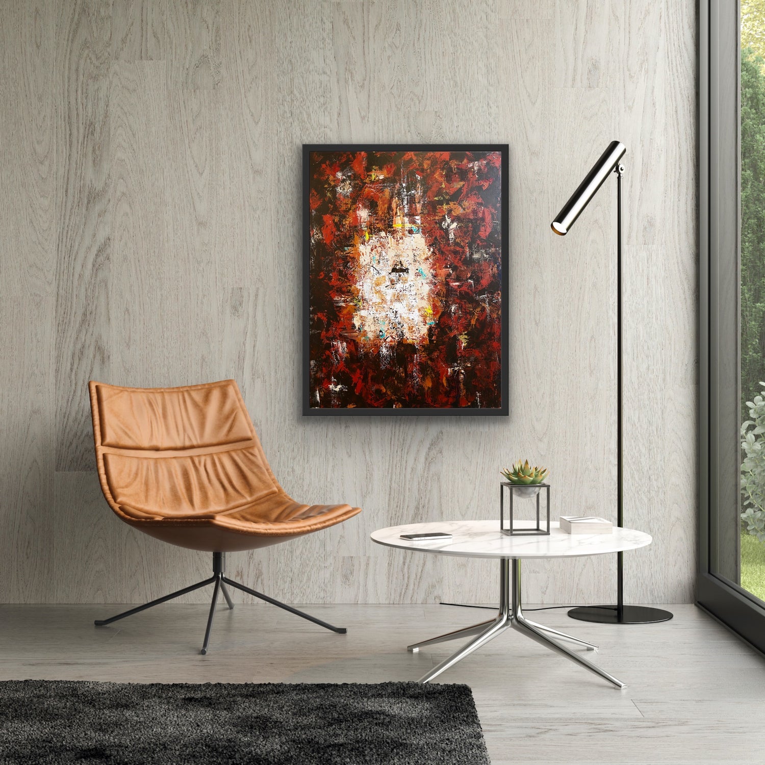 Tempered Hope, abstract acrylic painting by Columbus, Ohio artist, Raymond McKenzie. Measuring 30”wide by 40” high, this painting is a perfect size for most homes or offices. It is great for a wide variety of decor styles from minimalist, contemporary to mid-century.