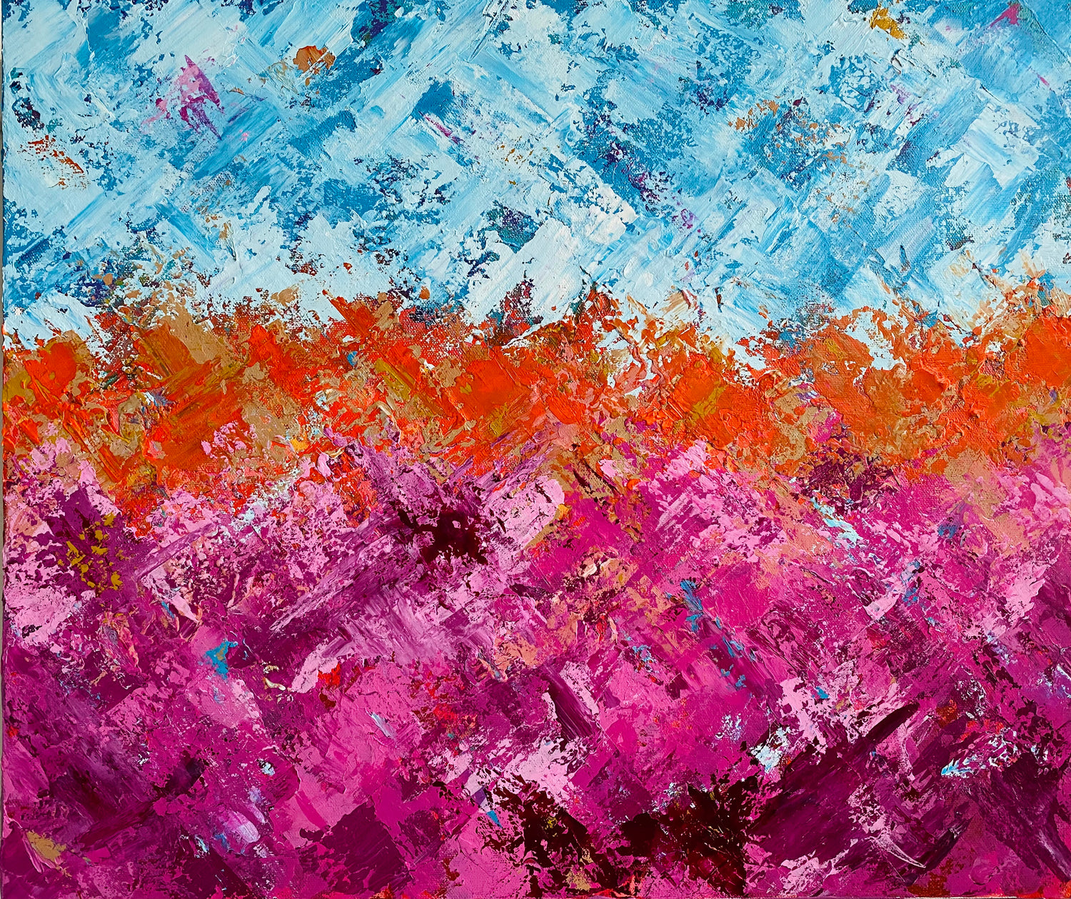 “Vibrant Glory” is an 18” h x 24” w acrylic, abstract painting by Columbus, Ohio based artist, Raymond McKenzie.