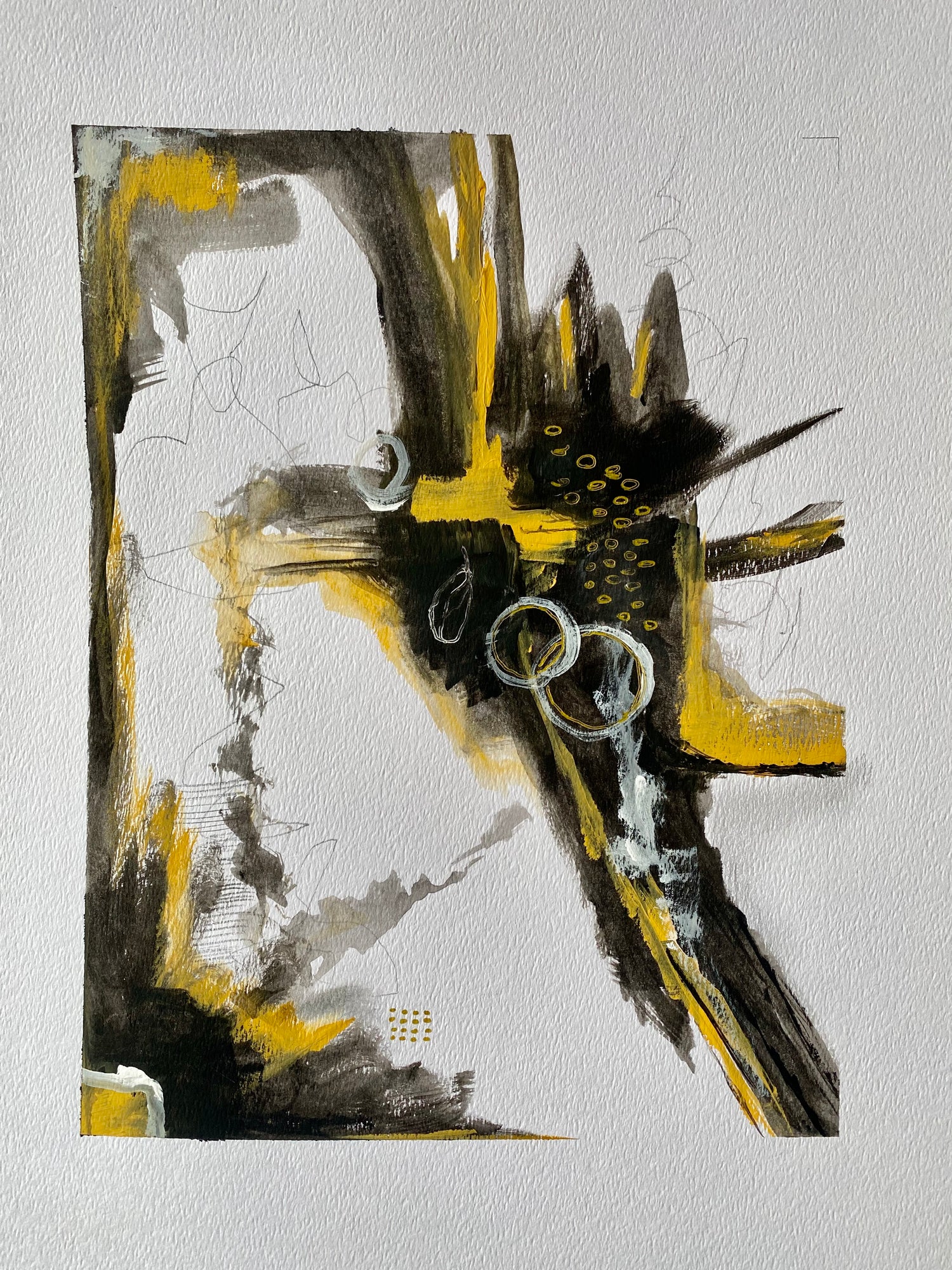 Yellow and black gouache abstract painting on fine cold-pressed watercolor paper. The artwork will come matted and ready to frame.