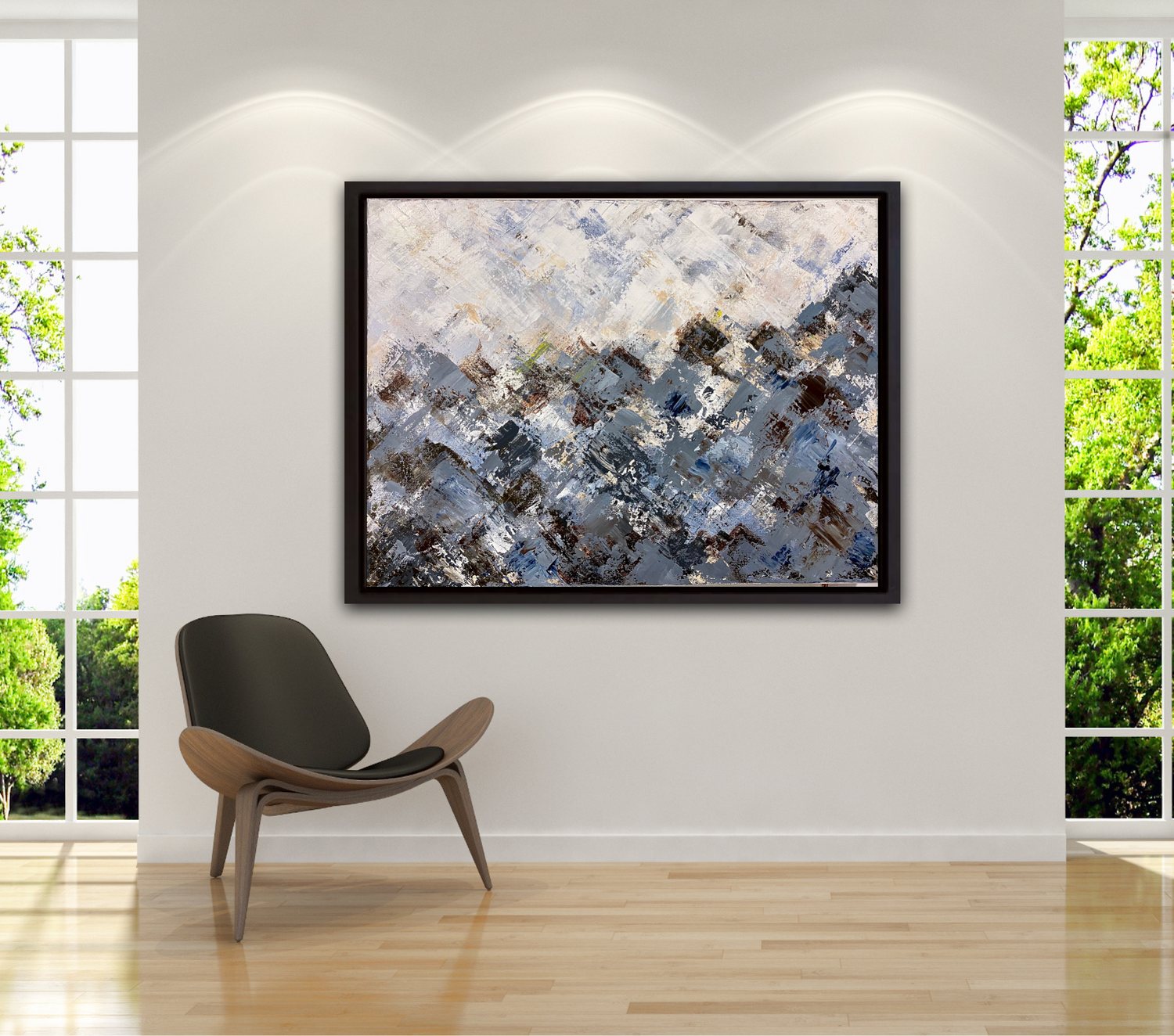 My paintings are only roughly planned before I start, I know the palette of colors I’m using and an idea of an emotion I want to evoke. Sometimes that feeling changes as the painting evolves and takes me somewhere else. I use a combination of thick viscous paint worked with a palette knife with washes applied with house painting brushes. This combination allows me to work the paint in different ways in between layers.